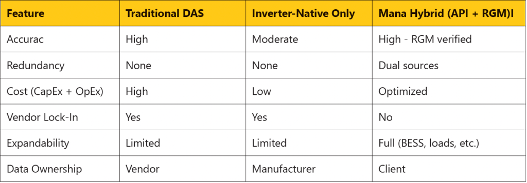 Inverter-native platforms can be cost-effective, but they lack independent verification and financial-grade totals required for compliance, SREC reporting, and long-term asset management.